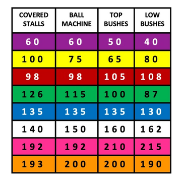 These yardages reflect the actual measured distances from each hitting area, not taking into account the limited flight balls.